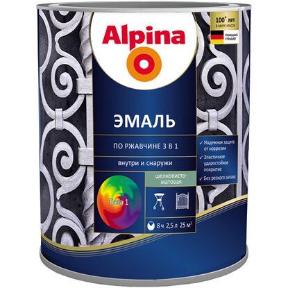 ALPINA Эмаль по ржавчине 3 в 1 База3 шелковисто-матовая 2,13 л / 2,3 кг