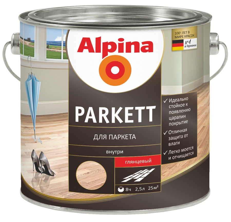 ALPINA Parkett Лак алкидный для паркета шелко-матовый/глянцевый РБ 2,5 л