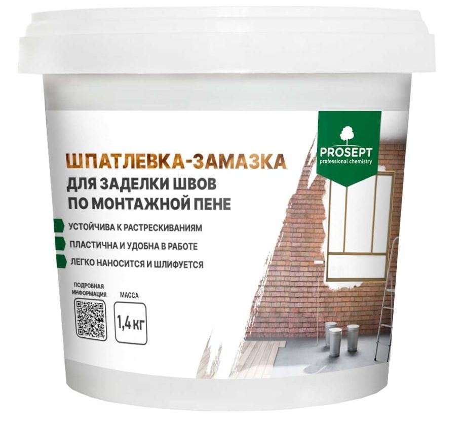 PROSEPT шпатлевка-замазка для заделки швов по монтажной пене, 1,4кг
