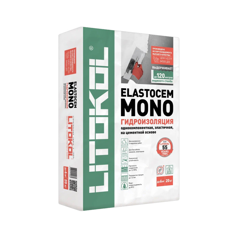 LITOkOL ELASTOCEM MONO эластичная гидроизоляция 20кг